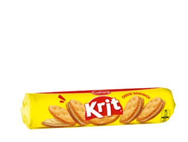 Delight in the rich and creamy cheese filling sandwiched between two savory crackers with KRIT Cheese Sandwich. Comes in a pack of 15 items.